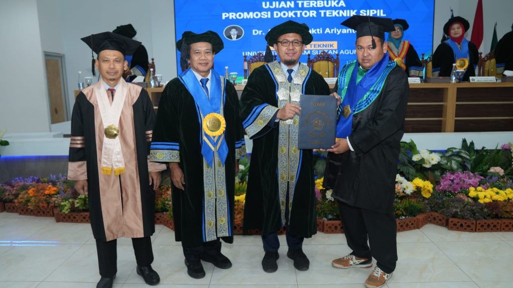 Arief Subakti Ariyanto berhasil meraih gelar doktor dari Program Doktor Teknik Sipil (PDTS) Unissula. Ia berhasil lulus dalam sidang terbuka doktor yang dilaksanakan pada Jumat (21/11/2025) di Aula Fakultas Teknik. Ia berhasil mempertahankan disertasinya yang berjudul daya tahan abrasi mortar komposit geopolimer dan serat rami pada struktur bangunan air.