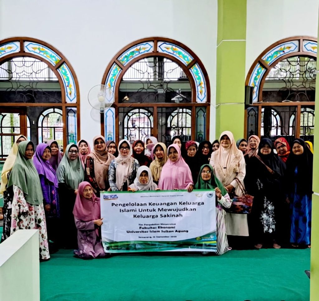 Dosen Fakultas Ekonomi dan Bisnis (FEB) Unissula mengadakan pengabdian masyarakat pada Jumat (12/9/2025). Mereka adalah Prof Dr Indri Kartika SE MSi Ak CA dan Dr Dista Amalia Arifah SE MSi Ak CA. Pengabdian masyarakat difokuskan memberikan sosialisasi dan pendampingan yang bertajuk pengelolaan keuangan keluarga islami untuk mewujudkan keluarga sakinah pada jamaah Masjid Muhajirin, Banyumanik. Tujuannya meningkatkan pemahaman dan kesadaran  bagi para ibu -ibu dalam mengelola keuangan keluarga secara syariah, serta dapat bertransaksi digital secara aman dan nyaman.