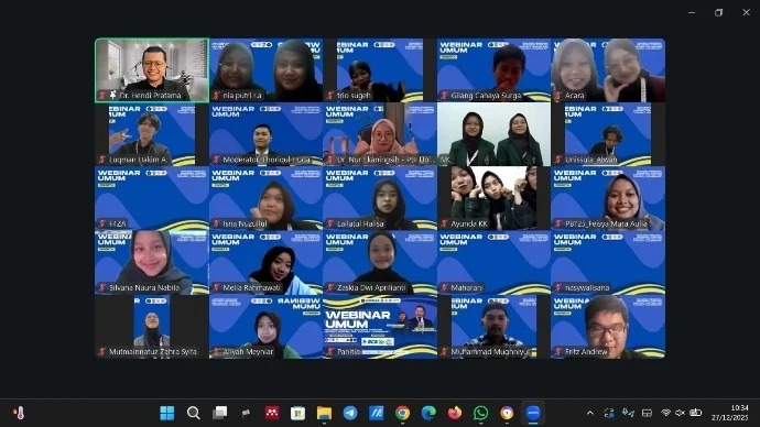 Himpunan Mahasiswa Pendidikan Bahasa Inggris (HIMA PBI) Universitas Islam Sultan Agung (Unissula) menyelenggarakan webinar. Tema yang diangkat building personal branding through content writing and thought leadership yang dilaksanakan secara daring melalui Zoom Meeting pada Sabtu (27/12).